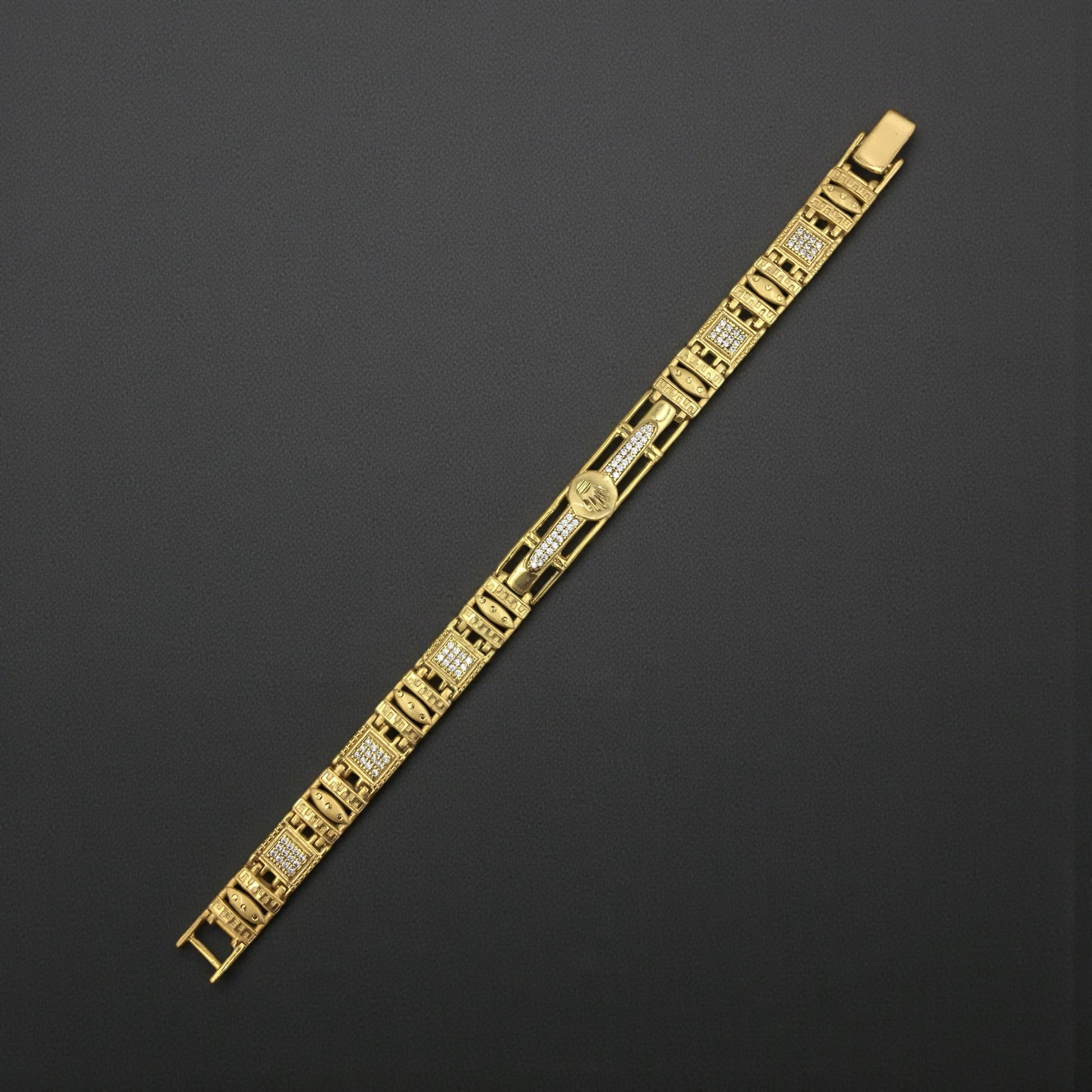 A refined blend of elegance and modern masculinity, this premium bracelet features a sleek rectangular centerpiece adorned with high-quality nano diamonds that deliver brilliant shine without being overpowering. The minimal yet luxurious design makes it ideal for those who prefer subtle sophistication over heavy jewelry.