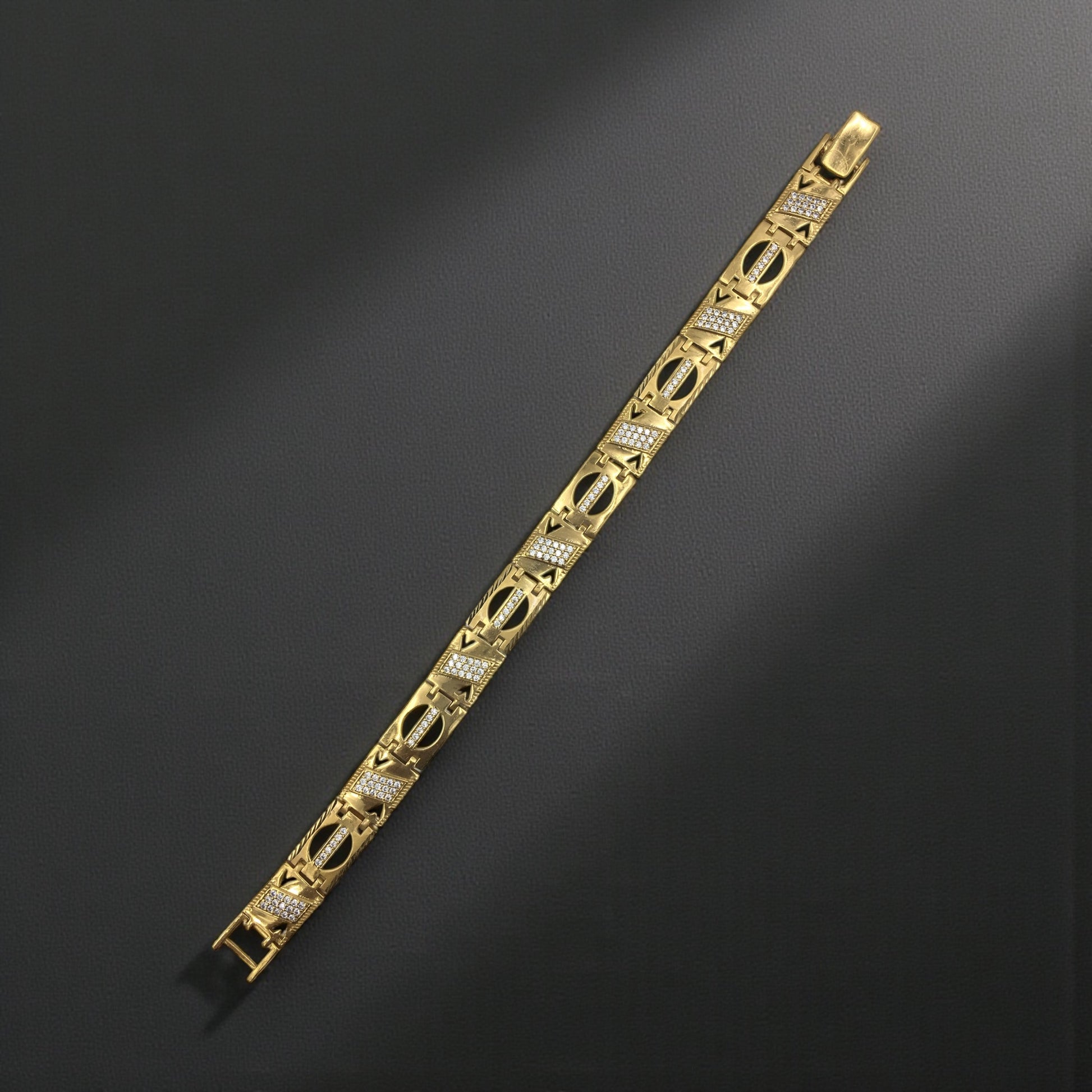 A refined blend of elegance and modern masculinity, this premium bracelet features a sleek rectangular centerpiece adorned with high-quality nano diamonds that deliver brilliant shine without being overpowering. The minimal yet luxurious design makes it ideal for those who prefer subtle sophistication over heavy jewelry.