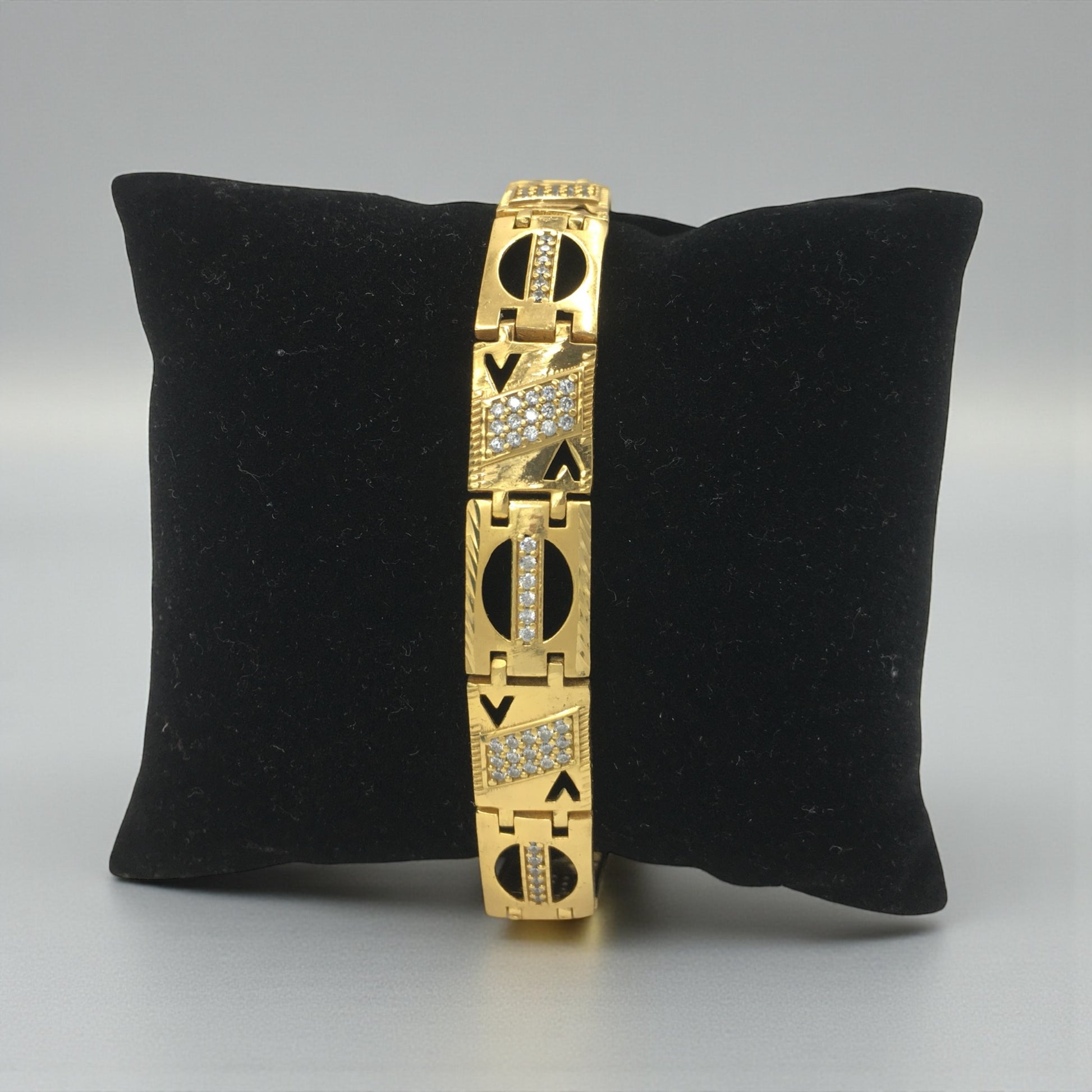 Finished in a rich gold tone with precision craftsmanship, the bracelet offers a premium look while remaining lightweight and comfortable. The secure watch-style locking mechanism adds both safety and a high-end feel, ensuring a snug fit and effortless wear.