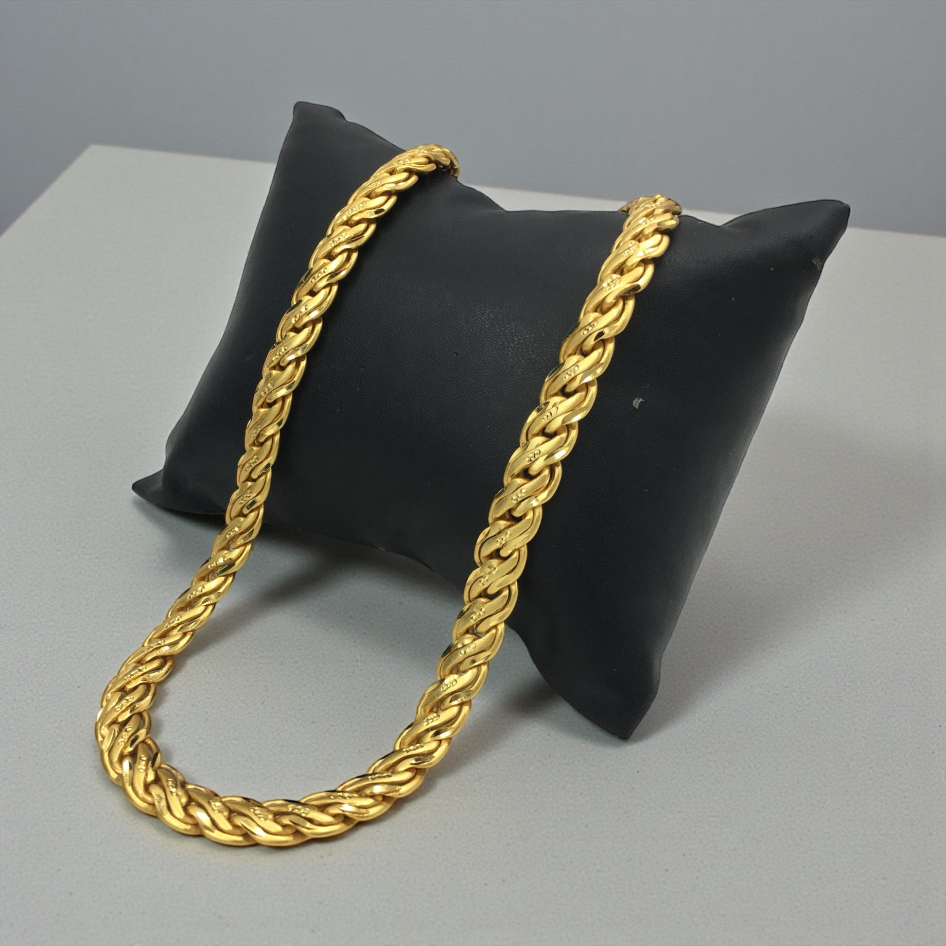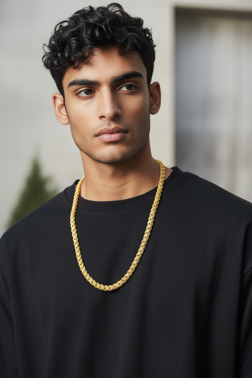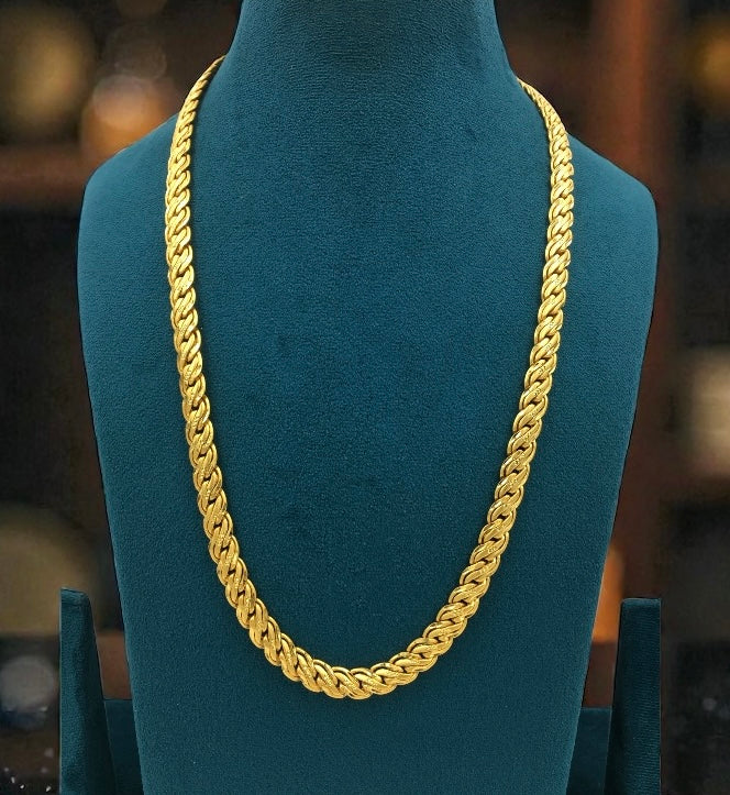 This premium forming chain is crafted with high-quality copper and finished with rich micro-forming gold plating. Designed with flawless detailing and a smooth, luxurious finish, it elevates your everyday style effortlessly. The chain feels bold, classy, and comfortable to wear — perfect for both casual and festive looks.