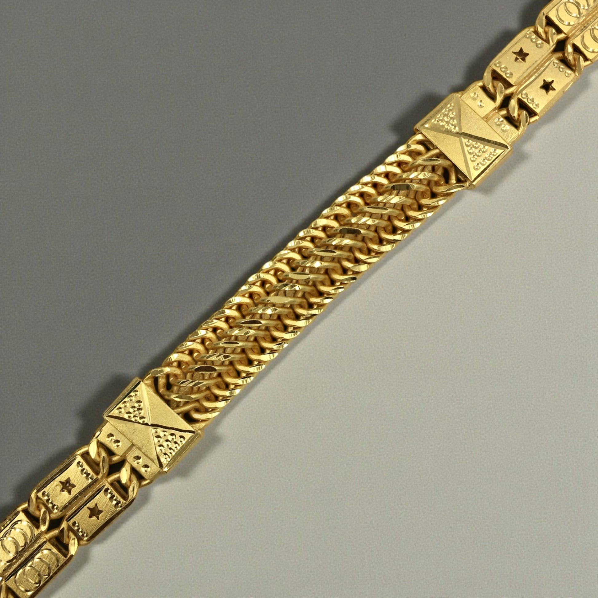 Whether worn with casual outfits, office wear, or festive attire, this bracelet adds a confident statement without looking overdone. The high-quality micro gold polish gives it a rich finish that closely resembles real gold—making it an ideal choice for men who want luxury at an accessible price.